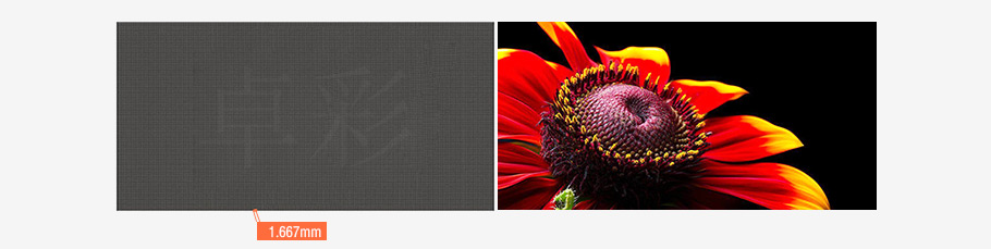 P1.667小间距LED显示屏是室内大屏显示中较为常用的一种,成熟度高,技术稳定可靠。