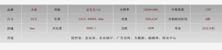 | 定时开关机功能 | 智能开关机,用户可自由设置时间段以实现大屏幕定时开机、定时关机,方便客户使用; | |