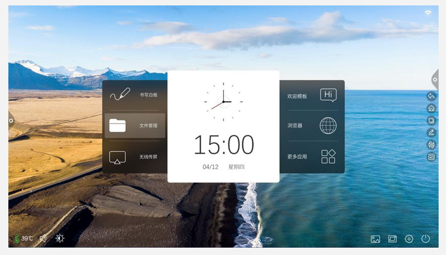 侧边栏按钮、手势唤出方式和触摸控制开关自由切换,让会议机变身广告展示机;