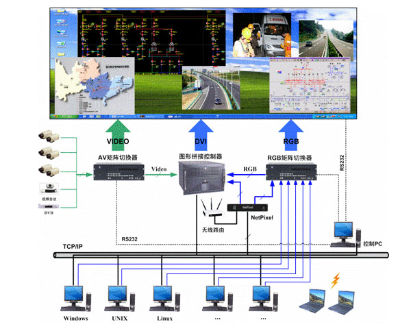 考虑到系统的先进性、稳定性、实用性、集成性、可扩展性和经济性等原则,我们推荐国际领先的DID液晶显示屏,专业的DID液晶显示屏,是在普通液晶面板制造工艺的基础上,为满足监控、高亮度环境、长时间连续开机和更长寿命而开发的液晶显示屏,同时配以数字拼接处理器,可提供模拟视频、高清视频、模拟RGB、数字DVI多种信号的接入与显示功能,保证产品应用时具备最大的兼容性和灵活性,无需拼接控制器即可实现M×N拼接,支持信号任意开窗及叠加显示。